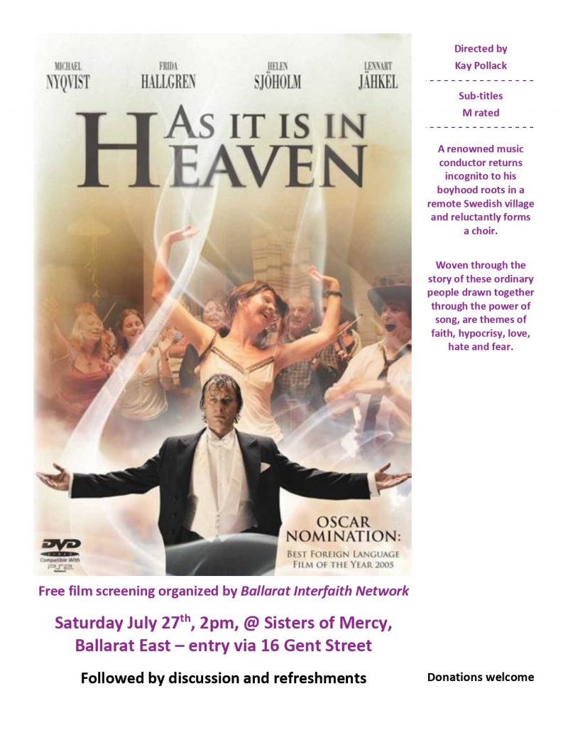 Free film screening organised by Ballarat Interfaith Network.
