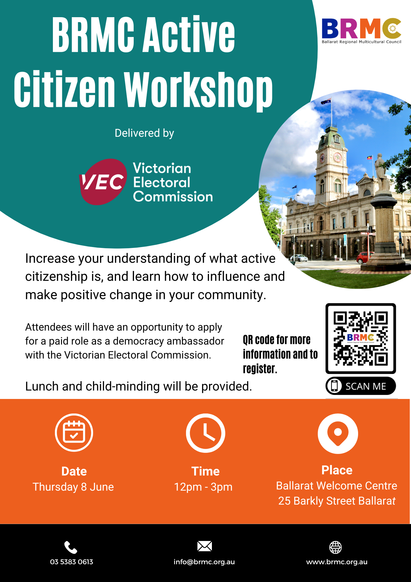 The Victorian Electoral Commission is delivering a workshop at the BRMC Welcome Centre for our multicultural communities on the 8th June 12pm-3pm.