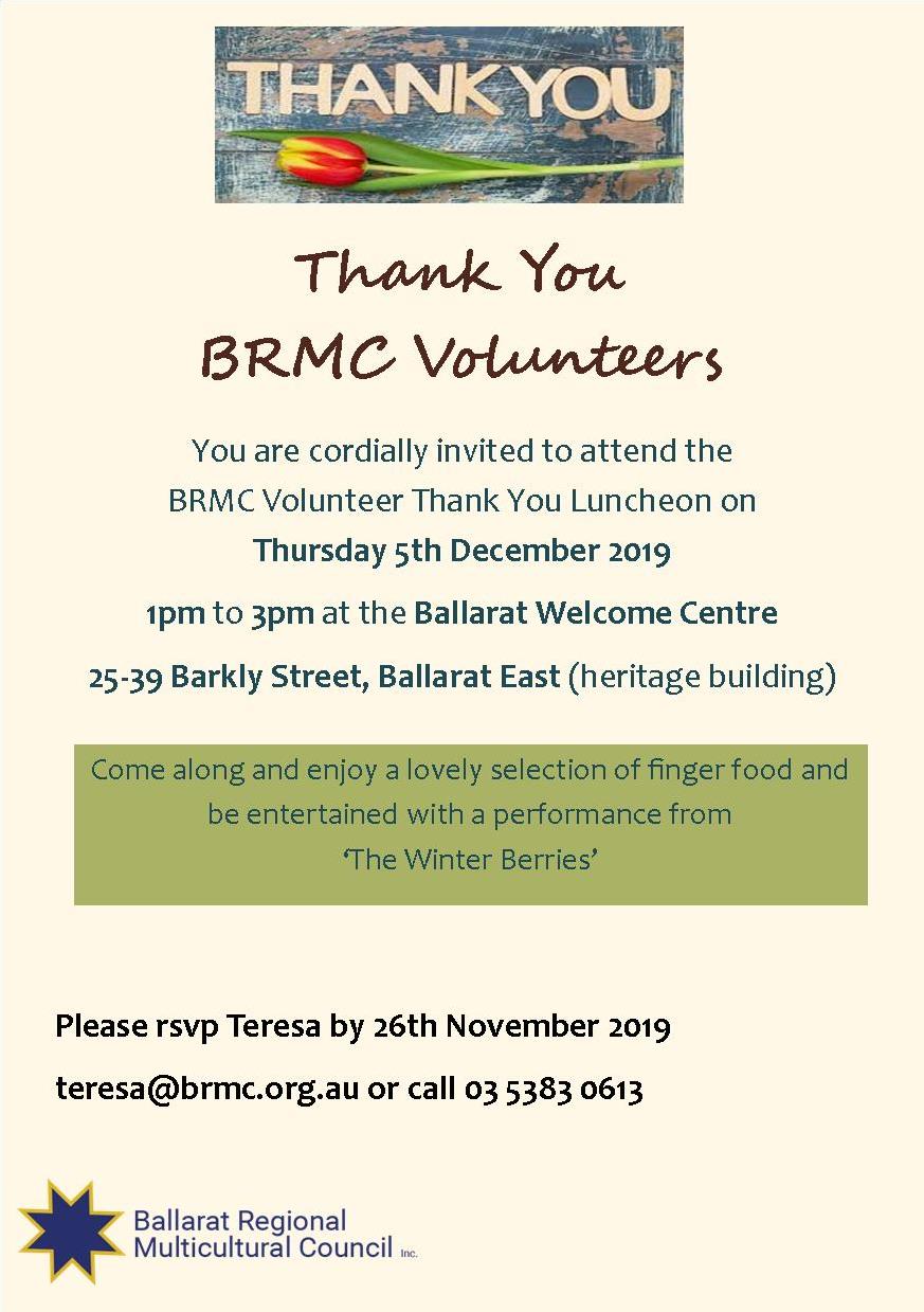 We are delighted to invite all BRMC volunteers to a Thank You Luncheon to express our appreciation.