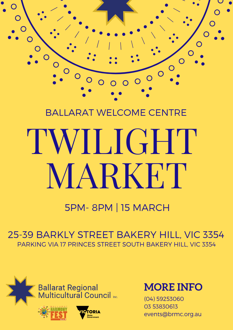 Our Twilight Market on Friday 15th March at the Ballarat Welcome Centre is the community launch event of Harmony Fest 2019.