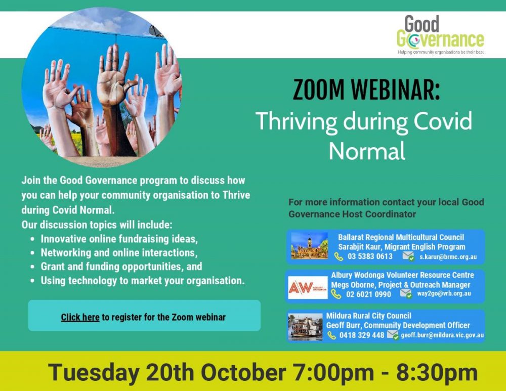 The webinar will focus on innovative online fundraising ideas, networking and online interactions, grant and funding opportunities, and using technology to market your organisation.