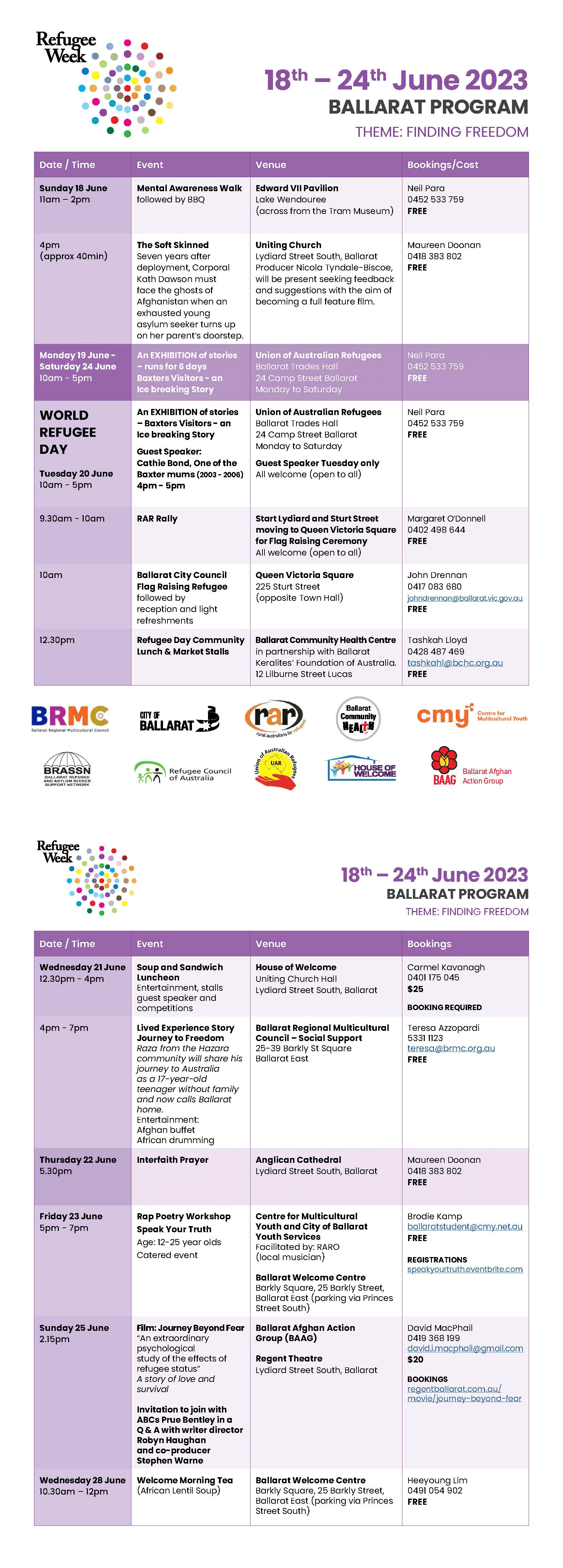 The Refugee Week program here in Ballarat is a unique opportunity for us all to experience and celebrate the rich diversity of our refugee communities, and better understand their journeys.