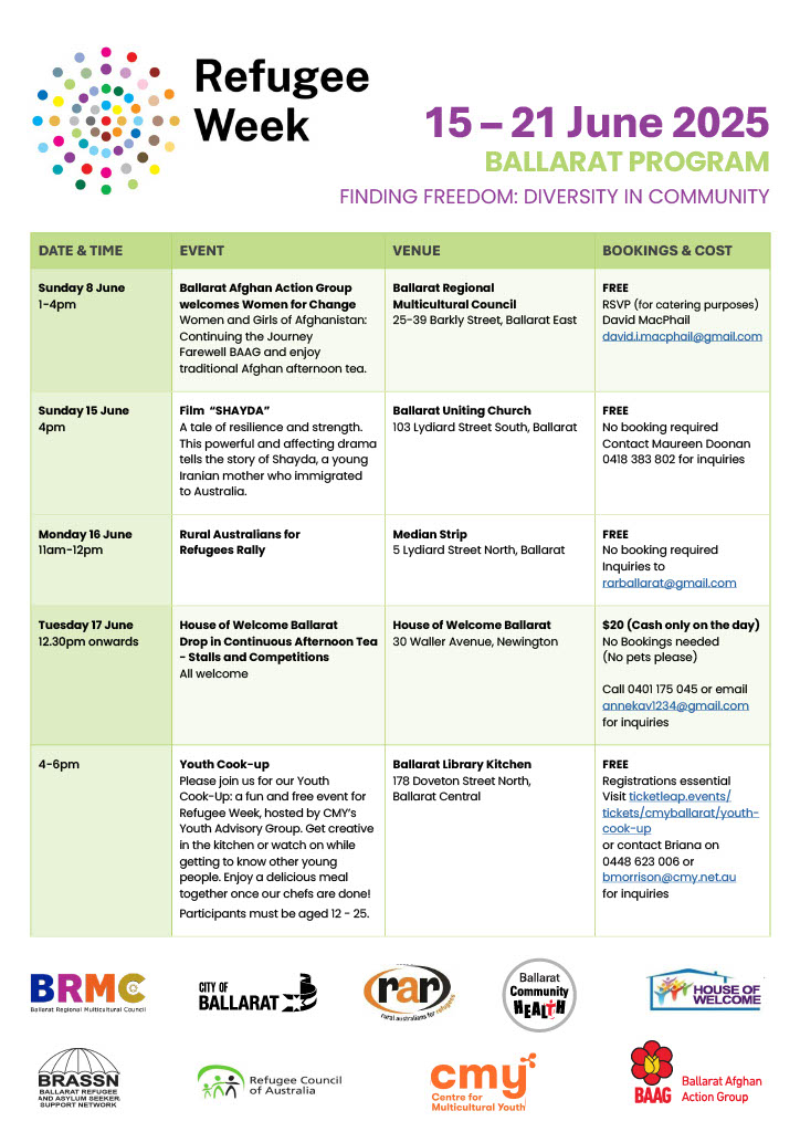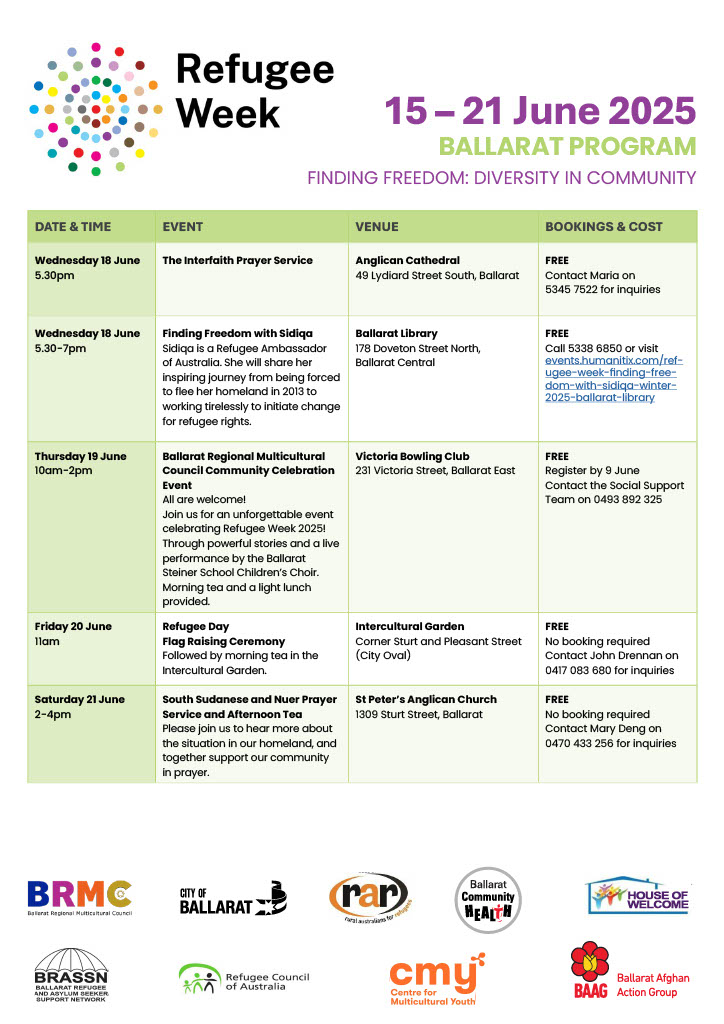 Let’s celebrate the rich diversity that refugees bring to our communities. Download : Refugee Week Program 2025