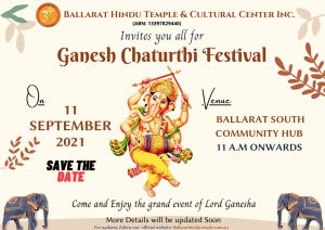 Ballarat Hindu Temple and Cultural Center will be celebrating "Ganesh Chaturthi Festival". Come and enjoy the grand event of Lord Ganesha.