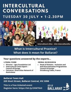 Organised by City of Ballarat. A unique chance to meet Irena Guidikova, Head of Division Inclusion and Antidiscrimination Programmes. Council of Europe - Strasbourg. Learn all about Intercultural Practice in…