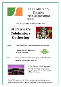 The Ballarat & District Irish Association are pleased to invite you to their St Patrick's Celebratory Gathering. Come along and celebrate this annual event in the wonderful setting of Lake…
